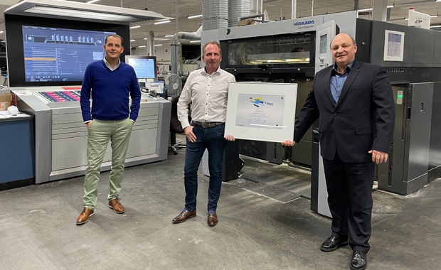 Der Essener Druck- und Mediendienstleister Druckpartner hat den Prinect Production Manager von Heidelberg in Betrieb genommen (v.l.): die Geschäftsführer von Druckpartner, Dominik Schikfelder und Marco Böke, sowie Alexander Schuster, Mitglied der Geschäftsleitung bei der Heidelberger Druckmaschinen Vertrieb Deutschland GmbH. Für Heidelberg war es nach eigenen Aussagen der 1.000. Prinect Production Manager, der seit der Markteinführung der Lösung auf der Drupa 2016 installiert wurde.