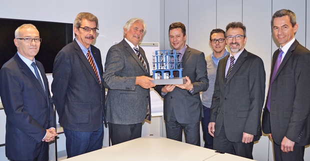 Das Projektteam des Druckzentrums Aschendorff und Koenig & Bauer (v.l.n.r.): Mustafa Ugan, Projektmanager Koenig & Bauer Digital & Webfed; Thomas Wenge, Technischer Betriebsleiter Druckzentrum Aschendorff; Thilo Grickschat, Geschäftsführer Druckzentrum Aschendorff; Stefan Segger, Vertriebsdirektor Koenig & Bauer Digital & Webfed; Markus Schrubba, Koordinator Produktionsprozesse Druckzentrum Aschendorff; Herbert Kaiser, Leiter Projektmanagement Koenig & Bauer Digital & Webfed, und Georg Fleder, Vertriebsleiter Koenig & Bauer Digital & Webfed.(Bild: Koenig & Bauer AG)