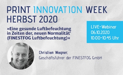 Dieses Web-Seminar zeigt auf, warum eine Luftfeuchtigkeit zwischen 40 und 60% nicht nur dem Druckprozess nutzt, sondern auch die Mitarbeiter vor Keimen, Bakterien und Viren besser schützt. Der Referent Christian Wagner (Geschäftsführer der FINESTFOG GmbH) erklärt das einzigartige Hygienekonzept von FINESTFOG-Luftbefeuchtern. Es werden Unterschiede zu andern Systemen aufgezeigt und es wird dargestellt, wie durch eine Umrüstung mittelfristig viel Geld gespart werden kann.