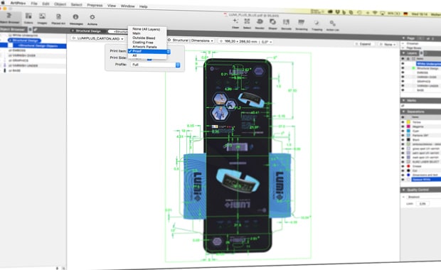 Artpro+ soll es ermöglichen, die gesamte Bearbeitung in der Druckvorstufe 40 % schneller als bisher durchzuführen. Dabei benötigt diese neue Version laut Esko weniger Mausklicks, um Aufgaben zu erledigen, öffnet und speichert Dateien mit nativen PDFs schneller und beschleunigt das Unter-/Überfüllen (Trapping).