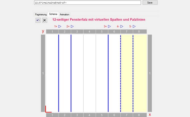 Visuelle Darstellung von Paginierung und Greiffalzpositionen. (Bild: Schmitthenner Software & Consulting)
