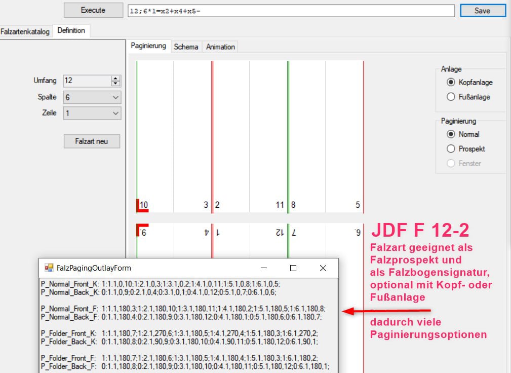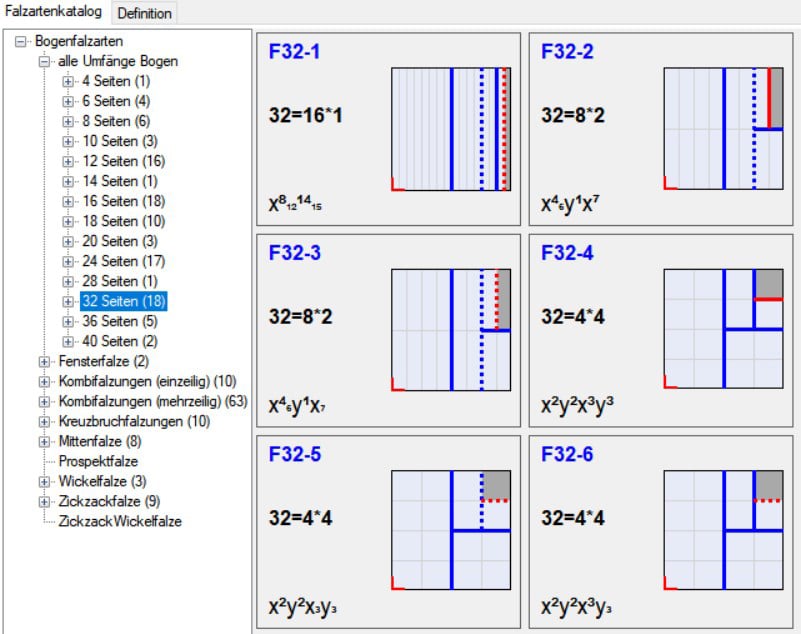 Visualisierte Falzdefinitionen als Ergänzung zur schnellen Erfassung (Pseudomathematik).