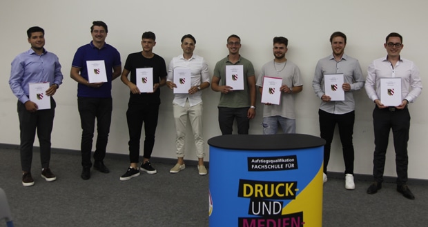 Acht Absolventen haben die Fachschule für Druck- und Medientechnik Nürnberg nach zwei Jahren erfolgreich abgeschlossen. Neben dem Titel “Staatlich geprüfte Druck- und Medientechniker” dürfen die Absolventen erstmals auch den neuen Titel “Bachelor Professional in Technik” führen.
