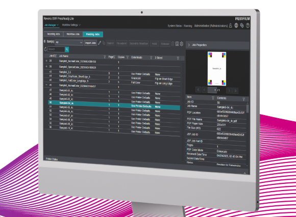 „PressReady Lite ist ein Produktivitätspaket für das DFE Fujifilm Revoria Flow“, so John Davies, Workflow Product Group Manager bei Fujifilm EMEA. Mit der Software lassen sich PDF-Dateien prüfen und korrigieren sowie Aufträge automatisch gruppieren – etwa nach verwendeten Tonern oder Substraten. So lassen sich unnötige Maschinenrüstzeiten vermeiden.