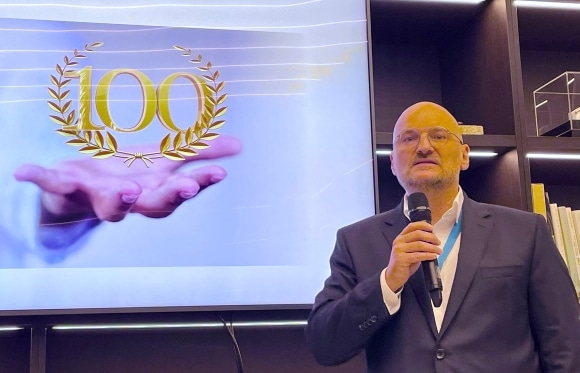 Dario Urbinati, CEO der Gallus Group, heißt die Gäste der „Gallus Experience Days“ willkommen.