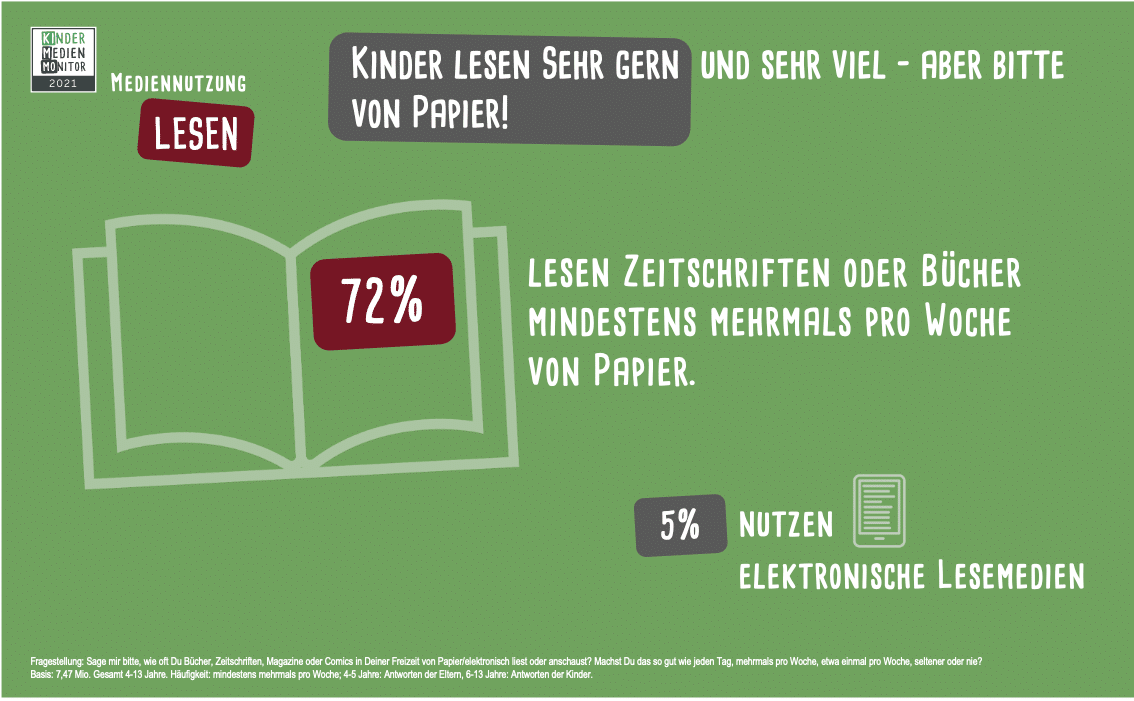 Eines der Studienergebnisse: Kinder bevorzugen zum Lesen gedruckte Medien. (Bild: Kinder Medien Monitor 2021)