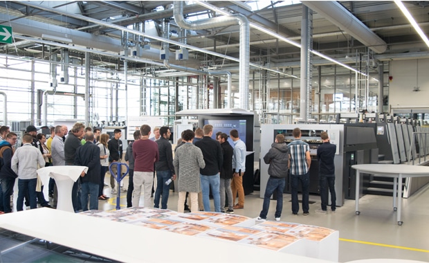 Unser Bild zeigt angehende Medientechnologen Druck, Mediengestalter, Techniker und Meister aus fast allen Teilen Deutschlands beim „Open Day“ für Schüler und Lehrer im September 2017 bei der Heidelberger Druckmaschinen AG in Wiesloch.