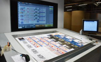 Das Bündeln von Aufträgen in sogenannten Sammelformen ist die Basis für das Geschäftsmodell der Online-Druckerei Saxoprint. Am Prinect Press Center der Speedmaster XL 162 erfolgt die Kontrolle. (Bild: Deutscher Drucker)