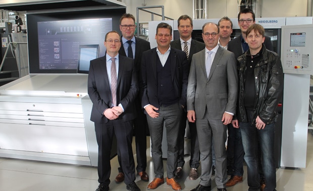 Die Lensing Druck Gruppe nutzt das Heidelberg-Subskriptionsmodell (v.l.): Dr. David Schmedding, Leiter Corporate & Digital Business Development bei Heidelberg, (3.v.l) Martin Cremer, Geschäftsführer der Lensing Druck Gruppe und Prof. Dr. Ulrich Hermann (5.v.l.), Mitglied des Vorstands und Chief Digital Officer bei Heidelberg zusammen mit weiteren Vertretern von Lensing und Heidelberg.