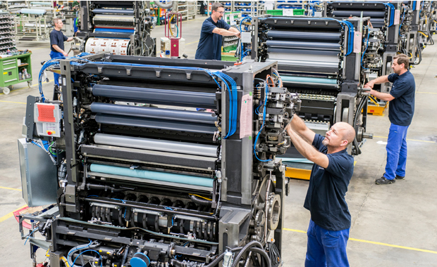 Druckmaschinen-Montage im Werk Wiesloch-Walldorf der Heidelberger Druckmaschinen AG.(Bild: Heidelberger Druckmaschinen AG)