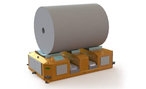 Frank Baude, Leiter Logistik bei Herma erklärt: “Wir sprechen über Transportwagen, die Rollen mit einer Breite bis zu 2 Metern und einem Gewicht bis zu 4,5 Tonnen bewegen.” Deshalb komme jetzt bei Herma eine Technologie zum Einsatz, die auch genutzt wird, um Züge, Rotorblätter von Windkraftanlagen oder um Flugzeugrümpfe durch Montagehallen zu bewegen. Insgesamt zehn solcher großen fahrerlosen Transportfahrzeuge (FTF) werden sich laut Herma durch das neue Beschichtungswerk bewegen. Dazu kämen noch vier kleinere Fahrzeuge, die mit ihrer niedrigeren, ergonomisch günstigen Arbeitshöhe dort zum Einsatz kämen, wo manuelle Arbeiten an den Rollen vorgenommen werden müssen, zum Beispiel beim Entpacken.