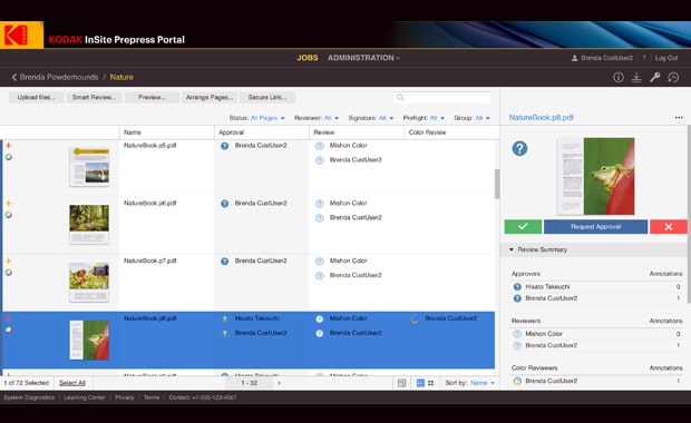 Kodak Insite Prepress Portal 9.0: Rationellere Navigation durch den Jobs- und Seiten-Bereich mit Gesamtüberblick.