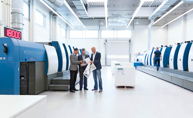 „Mit unserer Wachstumsoffensive 2023 wollen wir die sich aktuell bietenden Marktchancen im Wellpappen-, Kartonagen-, flexiblen Verpackungs-, 2-Teil-Dosen-, Kennzeichnungs-, Glasdirekt- und Dekordruck sowie im Postpress-Bereich offensiv für ein nachhaltiges profitables Wachstum nutzen“, ergänzt CFO Mathias Dähn. Der Einfluss des volatilen Wertpapiergeschäfts werde sich mit dem höheren Verpackungsanteil am Konzernumsatz reduzieren. „Bei den Rollenoffsetmaschinen für den Zeitungs- und Akzidenzdruck erwarten wir durch weiter zunehmende Maschinenstilllegungen und Druckereischließungen ein weiter rückläufiges Servicegeschäft. Mit allen unseren Initiativen und Projekten streben wir bis 2023 eine Steigerung des Konzernumsatzes auf rund 1,5 Mrd. Euro mit einer Ebit-Marge zwischen 7 % und 10 % an. Zur Umsatz- und Ergebnissteigerung sollen alle drei Segmente beitragen“, so Dähn.