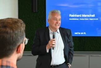 Reinhard Marschall, Geschäftsführer der Koenig & Bauer-Niederlassung für die D-A-CH-Region, begrüßte Druckfachleute aus rund 70 Akzidenzbetrieben. (Bild: Koenig & Bauer AG)