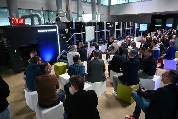 Bei einem Kundenevent in Radebeul präsentierte Koenig & Bauer zahlreichen Druck- und Medienunternehmen aus Deutschland, Österreich und der Schweiz Innovationen rund um den Akzidenzdruck. Neben der Maschinentechnik standen dabei intelligente Ergänzungen, welche Akzidenzdruckereien in ihrem Produktionsalltag unterstützen, im Mittelpunkt von Vorträgen und Live-Präsentationen.