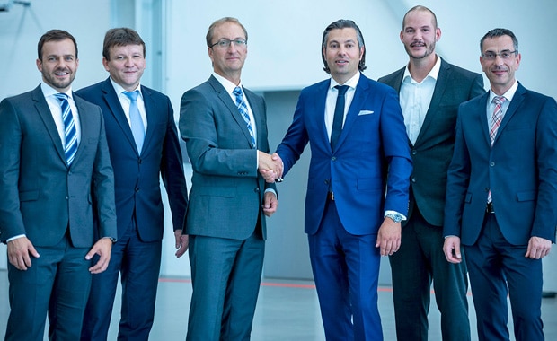 Nach der Unterzeichnung der Kooperation (v.l.): Janos Györösi, Betriebsleiter S.E.M Servicegesellschaft; Thomas Bergmann, Leiter Servicemanagement KBA-Digital & Web Solutions; Achim Trenkner, Geschäftsführer S.E.M Servicegesellschaft; Thomas Potzkai, Leiter Service und Projektmanagement KBA-Digital & Web Solutions; Michael Braun, Vertragsmanagement KBA-Digital & Web Solutions; Tim Arnheiter, Geschäftsführer S.E.M. Servicegesellschaft.