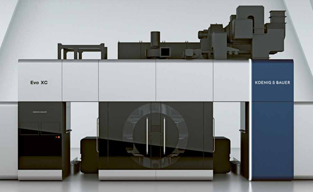 Bei der Evo XC handelt es sich um eine neue, kompakte 8-Farben-CI-Flexodruckmaschine (also mit Zentralzylinder). Sie wird in zwei verschiedenen Basisversionen angeboten und weist trotz geringen Platzbedarfs aufgrund ihrer kompakten Bauweise – je nach gewählter Version – maximale Drucklängen von bis zu 850 mm auf. „Wir haben die Evo XC so entwickelt, dass nicht nur Papier, sondern auch Kunststoffe mit umweltfreundlichen wasserbasierten Farben effektiv bedruckt werden können“, so Peter Lechner, Geschäftsführer von Koenig & Bauer Flexotecnica. Bei der Maschine kommen laut Lechner neuartige technologische Lösungen unter anderem für eine sehr effiziente Trocknung und eine intuitive Bedienung zum Einsatz. Das von Koenig & Bauer speziell entwickelte Energy Saving Package ermöglicht zudem eine Energierückgewinnung während der Produktion.