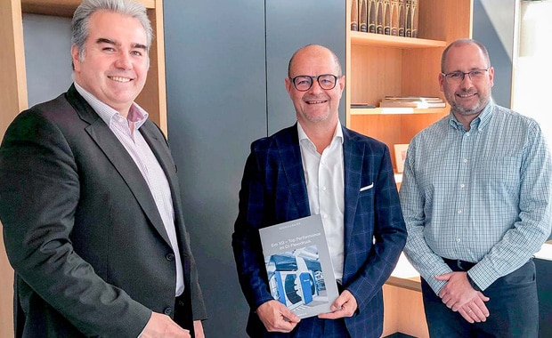 Arno Vogelhuber, Vertriebsleiter Koenig & Bauer Flexotecnica; Jürgen Popp, Geschäftsführer und Inhaber Zöllner-Wiethoff GmbH; Markus Haas, Technischer Leiter Zöllner-Wiethoff GmbH (v.l.).(Bild: Koenig & Bauer)