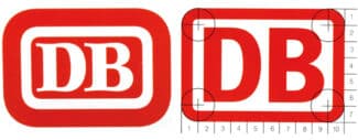 Vorher – nachher: 1993 übernahm Kurt Weidemann das Re-Design des Logos der Deutschen Bahn. Die Umkehrung der Farben zu rot auf weißem Grund sparte dem Konzern angeblich einige hunderttausend DM an Siebdruckfarbe.