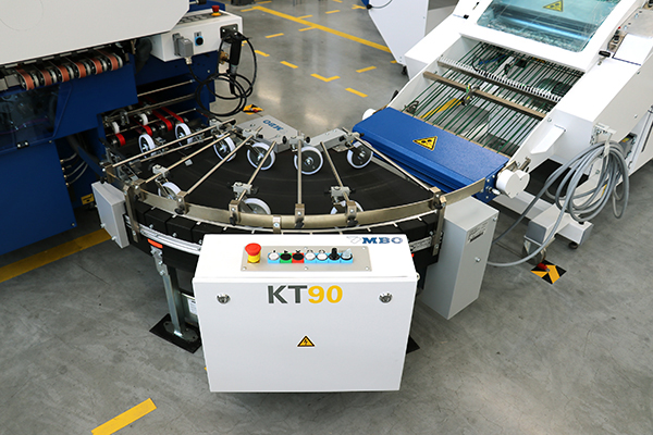 Der KT90 ist sowohl als Linkskurve als auch als Rechtskurve verfügbar. Die Einlaufhöhe der Linkskurve ist an den Dreibruchauslauf von MBO-Kombifalzmaschinen angepasst. So können beispielsweise klassische 16-Seiter produziert und über den Kurventisch zur Auslage transportiert werden. Die Ausführung als Rechtskurve ist auf den Kreuzbruchauslauf von MBO Kombifalzmaschinen ausgelegt. Auf diese Weise wird die Auslage in Linie hinter der Falzmaschine verwendet und verschlankt somit die Grundfläche des Maschinenverbunds.