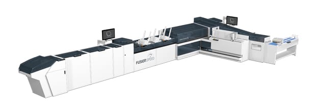 Die neue Fusion Speed bietet eine Höchstgeschwindigkeit von bis zu 30.000 Kuverts pro Stunde und verarbeitet ein Formatspektrum von B6+ bis B5 sowie Beilagen bis 15 mm Dicke. Damit das Bedienpersonal mit dieser Geschindigkeit Schritt halten kann, bringt die Maschine einen hohen Automatisierungsgrad mit. Die Fusion Speed eignet sich für diejenigen Anwender, die keine großen Formate verarbeiten müssen, aber hohen Output bei geringem Personalbedarf brauchen.