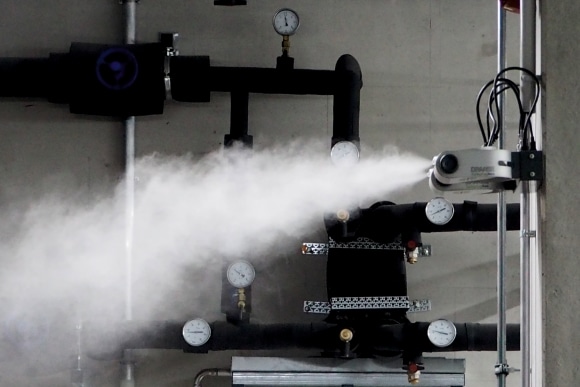 Condair Systems präsentiert in Düsseldorf die aktuelle Produktpalette adiabater Hochdruckdüsen-Luftbefeuchter. Im Vergleich zu anderen Technologien verbraucht die Hochdruck-Luftbefeuchtung Condair zufolge „bis zu 90 Prozent weniger Energie“. Hochdruckpumpe und Umkehrosmose sind in mobile Kleincontainer eingebaut, die zum Service halbjährlich ausgetauscht und über ein Kreislaufsystem kontinuierlich wiederverwendet werden. Durch automatische Updates und Technik-Checks können die Systeme – so Condair Systems – auch nach vielen Jahren Standzeit optimale Leistungswerte ohne Neu-Investitionen und zusätzlichen Ressourcenverbrauch erreichen.
