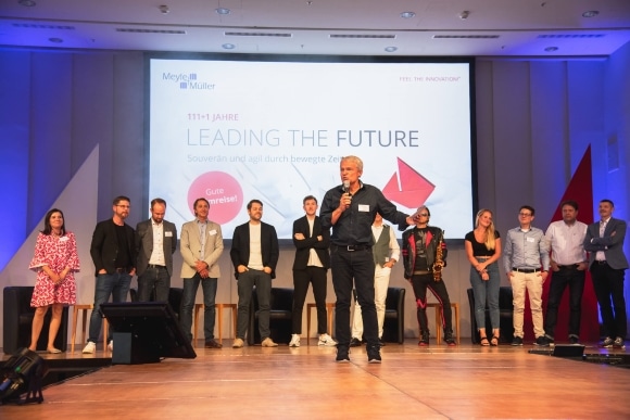 Das Event zeichnete sich, wie man es von der Meyle+Müller Gruppe kennt, durch einen spannenden und unterhaltsamen Mix aus Impulsvorträgen und Podiums-Diskussionen mit Top-Speakern aus verschiedenen Branchen aus. Gemeinsam mit dem Geschäftsführungsteam der Meyle+Müller-Gruppe diskutierten Philipp Bauknecht (Gründer und Geschäftsführer medialesson), Sebastian Bär (Geschäftsführer BÄR Schuhe und Joe Nimble), Jan Homann (Gründer und Geschäftsführer eqolot), Tristan Horx (Zukunftsforscher), Carsten Kraus (Seriengründer, KI Experte und Angel Investor), Réne Otto (Gründer und Geschäftsführer ROCKnSHOP) und Simeon Ruck (Geschäftsführer HELLMUT RUCK).