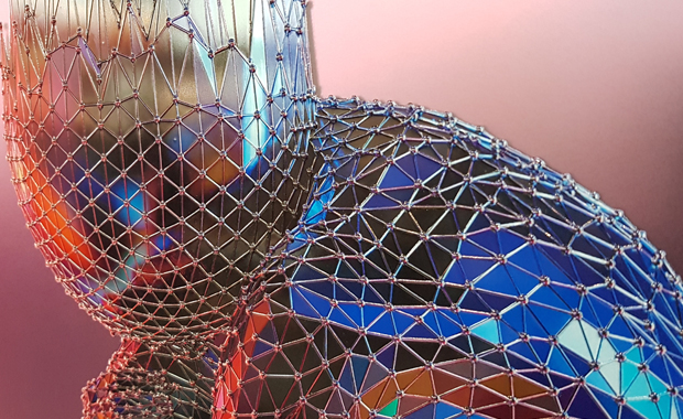 Ein Detail der “Spiegel Frau”. Das Bild wurde auf dem neuen Flachbettdrucker auf Spiegelglas gedruckt. Die erhabene Struktur entstand mit Hilfe des 2.5D-Printings.