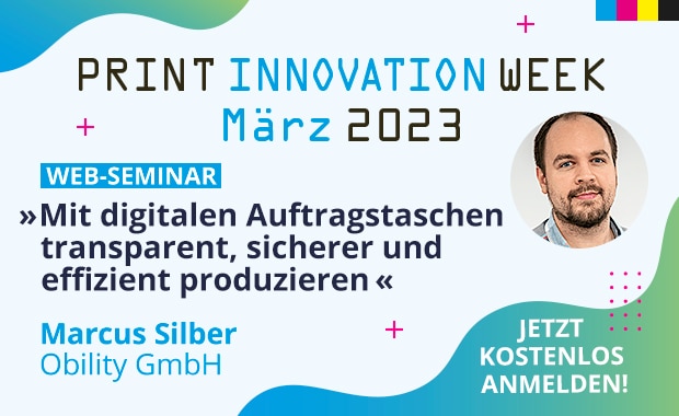 Der Vortrag „Mit digitalen Auftragstaschen transparent, sicherer und effizient produzieren“ (Mittwoch, 8. März 2023, 13:30-14:15 Uhr) richtet sich an Entscheider in Digital-, Offset- und Großformatdruckereien, zu deren Aufgaben die kontinuierliche Optimierung der Geschäftsprozesse zählt. Marcus Silber von Obility berichtet über praxiserprobte Lösungen.