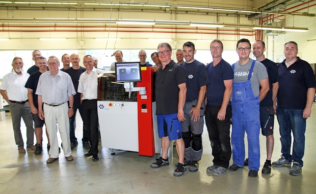 Freuen sich über die 2000. Nela VCP, die an den Kunden Irish News geliefert wird: Das Montageteam mit Geschäftsleitung.