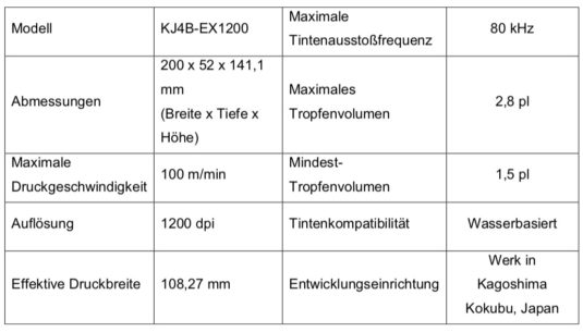 Die Druckköpfe der KJ4B-EX-Serie von Kyocera verwenden große integrierte Piezoaktuatoren (Komponenten für eine hohe Tintenausstoßleistung unter Einsatz des piezoelektrischen Effekts von Feinkeramik), die es nach Angaben des Herstellers durch die Homogenisierung der Bildqualität innerhalb des Druckkopfs ermöglichen, mit höherer Auflösung zu drucken.