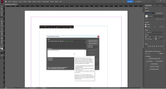 Im Duden-Korrektor CC 19 für Adobe InDesign und InCopy gibt es jetzt neuerdings Pop-up-Hilfetexte für Rechtschreibfehler.