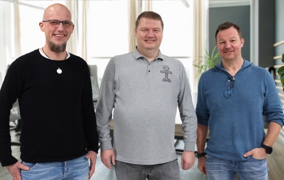 Stefan Reimers (M.) mit den Office-Partner-CEOs Sven Osterholt (l.) und Peter Pölling (r.).