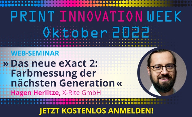 In modernen Produktionsumgebungen sind Druckdienstleister, Verpackungs- und Druckfarbenhersteller auf die absolut zuverlässige Farbkontrolle und effiziente Prüfung der Kundenanforderungen angewiesen. Im virtuellen Seminar der PRINT INNOVATION WEEK (X-Rite, 13.10.2022, 13:30 – 14:15 Uhr) erfahren die Teilnehmer, wie moderne Farbmessung aussieht und warum Farbmessgerät nicht gleich Farbmessgerät ist.