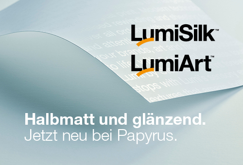 Während “Lumi-Art” eine glänzende Oberfläche bietet, kommt “Lumi-Silk” mit einer halbmatter Oberfläche daher. Beide sollen durch ihre Oberflächenqualität nicht nur für eine hohe Farbbrillanz sorgen, sondern auch für eine gute Verarbeitung. Beide Papiere unterstützen vielfältige Veredelungsmöglichkeiten. Das Vollsortiment Lumi gibt es laut Papyrus in 425 Spezifikationen in Grammaturen von 90 – 300 g/m². In 250 /300 und 350 g/m² lasse sich Lumi weiterhin mit Multi-Art kombinieren, das in den hohen Grammaturen als Marke und Qualität weitergeführt wird. Das neue Bilderdruckpapier Lumi ist FSC-zertifiziert und ab sofort erhältlich.