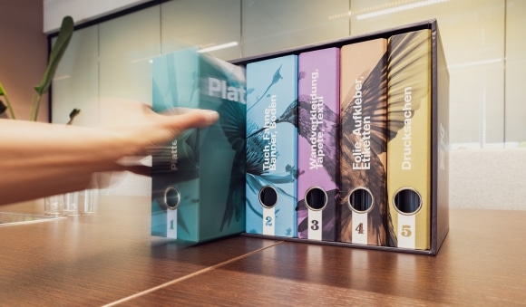 Probo liefert seine Großformatdrucke ausschließlich an professionelle Wiederverkäufer. Diese können nun eine spezielle Musterbox erwerben.