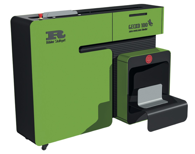 Der Stuttgarter Hersteller hat dazu zwei Klebebinder im Programm: Der Gecko Block Binder ist ein neuer Halbautomat, der sich vor allem für die Herstellung von Notizblöcken eignen soll. Der Zero Emission Binder ist laut Ribler die erste automatische Bindemaschine für 200 fertige Notizblöcke in einem Arbeitsgang (und im Großformat bis zu 530 mm Klebekante) pro Stunde. Nach dem Zuschnitt führt dies zu 400 Blöcken in DIN A4, 600 Blöcken in DIN A5 oder 1.000 Blöcken in DIN A6. Minimaler Klebstoffauftrag soll die Leimkante verschwinden lassen, die bei herkömmlichen Systemen stehen bleibt. Zudem profitiere das System von weitgehender Kostenreduktion und Prozessvorteilen bei voller Umweltverträglichkeit und Arbeitsschutz.
