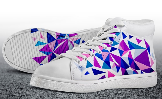 Mit dem neuen Versa UV LEF2-300D von Roland DG lassen sich Materialhöhen von bis zu 20 cm bedrucken. Schuhe können dank Rotationseinheit und Jigs personalisiert werden.(Bild: Roland DG)