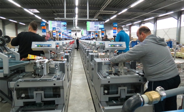 Die Beilagenverarbeitung bei der AFD Direktwerbung in Weinheim mit dem neuen One-2-Out-System von Ferag.