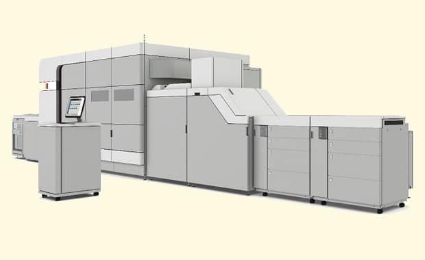 Die Varioprint i200 soll bei Canon die Produktivitäts-Lücke zwischen der Imagepress C10000VP (Toner) und der Varioprint i300 (Inkjet) schließen.