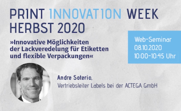 In diesem Online-Seminar (8.10., 10:00-10:45 Uhr) führt ACTEGA neue Möglichkeiten der Lackveredelung für Etiketten und flexible Verpackungen vor.