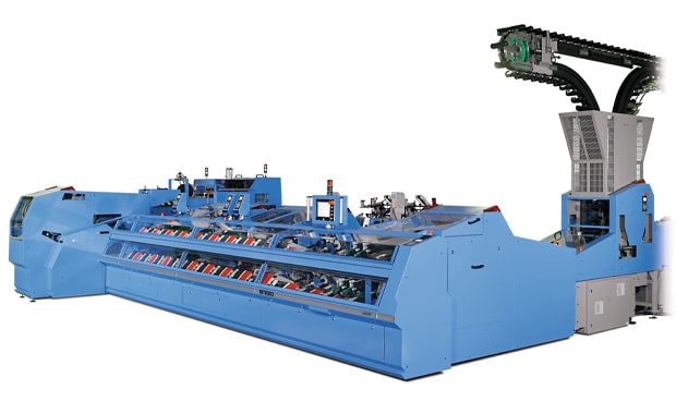 Wie in der Klebebindung mit dem Corona C15 verfügt die Oberndorfer Druckerei, die auf vier Rollenoffset-Druckmaschinen jährlich 66.000 Tonnen Papier bedruckt, damit auch in der Sammelheftung über eine Inline- und Offline-Option. Denn mit dieser neuen Produktionslinie kann sie sowohl mit und ohne Einsteckprodukten auf eine gemeinsame Abtransport-, Folier- und Palettierstrasse fahren.