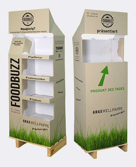 Für Foodbuzz produzierte Thimm die ersten Displays aus Graswellpappe. (Bild: Thimm Group)