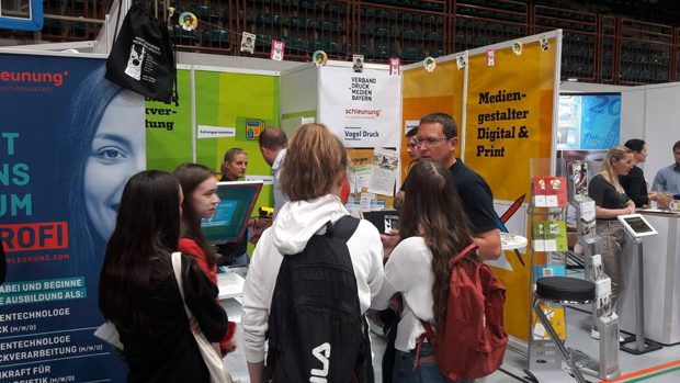 Vom 9. bis 10 Juli 2019 hat der bayerische Landesverband VDMB für die Ausbildungsberufe der Print- und Medienindustrie auf der Ausbildungsmesse Vocatium in Würzburg geworben.