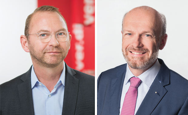 Ergebnis erzielt in der der achten Verhandlungsrunde: Die Vertreter von Gewerkschaft und Arbeitgeberverband, Frank Werneke (Verdi) und Sönke Boyens (BVDM).(Bild: Verdi/BVDM)