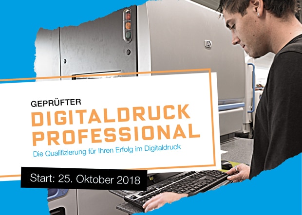 Die Weiterbildung zum geprüften Digitaldruck Professional ist eine Qualifizierungsmöglichkeit der Verbände Druck und Medien. Das bundesweite Schulungskonzept soll Fachkräfte aus der Medienproduktion fit für den Digitaldruck machen. Am 25. Oktober 2018 geht das Weiterbildungsformat in die sechste Runde.