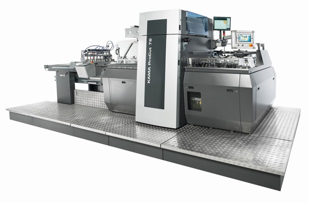 Die hochautomatisierte Stanz- und Prägemaschine für das Bogenformat B2 mit einer Leistung von bis 5.500 Bogen pro Stunde verspricht unter anderem die passergenaue Veredelung mit Heißfolie, Stanzen, Rillen, Prägen, Braille sowie das Ausbrechen und Separieren der Einzelnutzen ohne Werkzeuge am programmierbaren Inline Ausbrechsystem Kama SBU. Das Kama-Flaggschiff mit AutoRegister AR3 und neuem Greifersystem veredelt laut Hersteller mit Hoch-, Tief- und Multilevel-Prägung, Heißfolie und Hologramm. Veredelte Verpackungen bleiben recyclebar, da lediglich Pigmente aufgetragen werden, keine Folie.