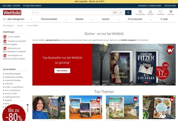 Bücher sind eine der wichtigen Produktkategorien im Onlineshop der Weltbild GmbH & Co. KG.
