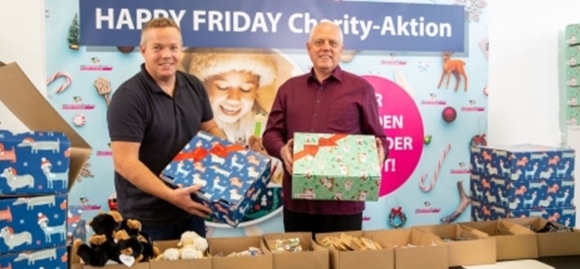 Anlässlich des weltweiten Shopping-Events „Black Friday“ veranstaltete WIRmachenDRUCK bereits zum dritten Mal den „Happy Friday“. An die Stelle der üblichen Rabattaktionen tritt beim Happy Friday eine Charity-Aktion, bei der das Unternehmen Weihnachtspakete an Kinder in Not versendet. Zusätzlich zu den 10.000 Happy-Friday-Geschenkboxen, welche WIRmachenDRUCK selbst spendet, können auch die Kundinnen und Kunden des Unternehmens im Onlineshop zusätzliche Geschenkboxen für die gute Sache erwerben, wobei alle Einnahmen zu 100 % an die Hilfsorganisation Hilfstransporte + Waisenhilfe e. V. weitergegeben werden.