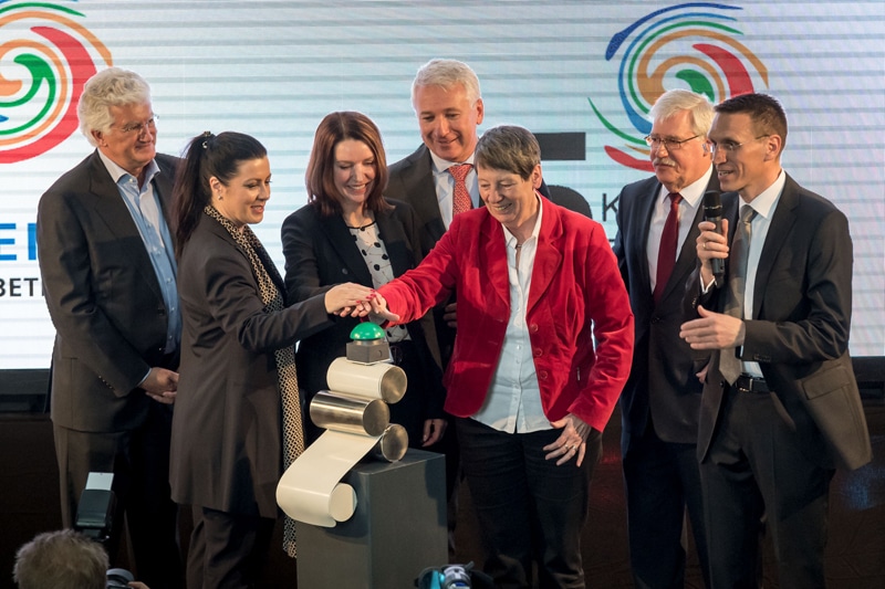 Bereits im Jahr 2015 hatte die WKS Gruppe als erster Rollendrucker den speziell für Druckereien entwickelten Blauen Engel erhalten. Seinerzeit war der Staatssekretär im Bundesministerium für Umwelt, Naturschutz, Bau und Reaktorsicherheit, Gunther Adler, zur Urkundenübergabe nach Wassenberg gereist. Vor diesem Hintergrund waren die nun in Wassenberg versammelten Gäste besonders erfreut, dass die Bundesministerin für Umwelt, Naturschutz, Bau und Reaktorsicherheit, Dr. Barbara Hendricks, Grußworte überbrachte und die feierliche Inbetriebnahme persönlich vornahm.
